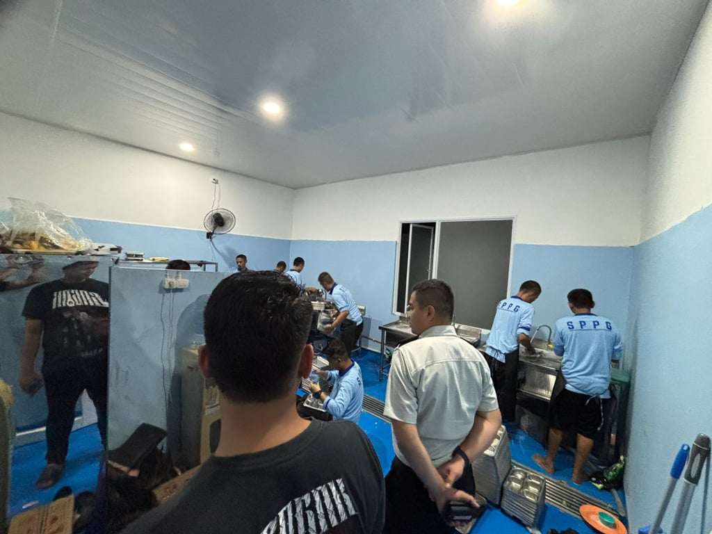 Tangerang – Memasuki hari ketiga sejak diresmikannya MBG Babakan 05, petugas Lapas Kelas I Tangerang melakukan pemantauan langsung terhadap kegiatan kerja 11 warga binaan dari SPPG 05 Babakan yang bertugas dalam proses pencucian dan sterilisasi peralatan makan sebagai bagian dari operasional harian MBG.