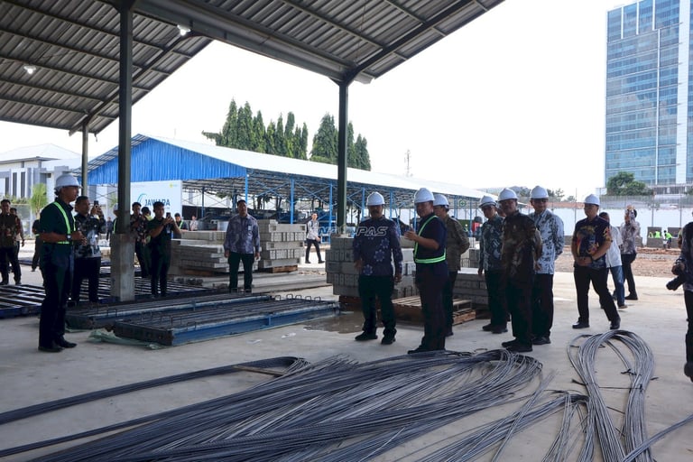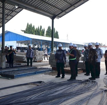 Selain melihat proses produksi, rombongan juga meninjau inovasi pengembangan produk berupa panel beton Rumah Instan Sederhana Hemat dan Aman (RISHAM). Produk ini dikembangkan sebagai material konstruksi yang efisien, kuat, serta memiliki nilai ekonomi.