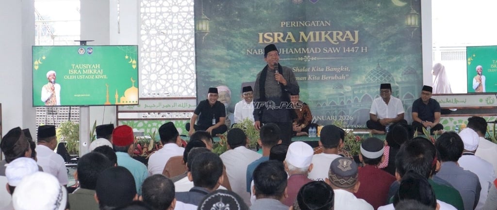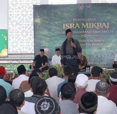 Lembaga Pemasyarakatan (Lapas) Kelas I Tangerang gelar peringatan Isra Mikraj Nabi Muhammad saw. 27 Rajab 1447 Hijriah di Masjid Baitussalam, Jumat (23/1). Kegiatan ini menjadi penguatan pembinaan kepribadian yang berorientasi pada ketahanan spiritual, pembentukan karakter, dan penguatan integritas moral Warga Binaan sebagai fondasi penting dalam proses reintegrasi sosial.