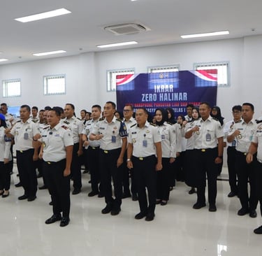 Lembaga Pemasyarakatan (Lapas) Kelas I Tangerang terus memperkuat komitmen pemberantasan handphone, pungutan liar, dan narkoba (halinar) melalui pelaksanaan Ikrar Zero Halinar yang digelar di Aula Lapas Kelas I Tangerang, Senin (20/4). Kegiatan tersebut berlangsung tertib dan diikuti seluruh jajaran petugas sebagai wujud nyata keseriusan dalam menciptakan lingkungan Pemasyarakatan yang bersih dan berintegritas.